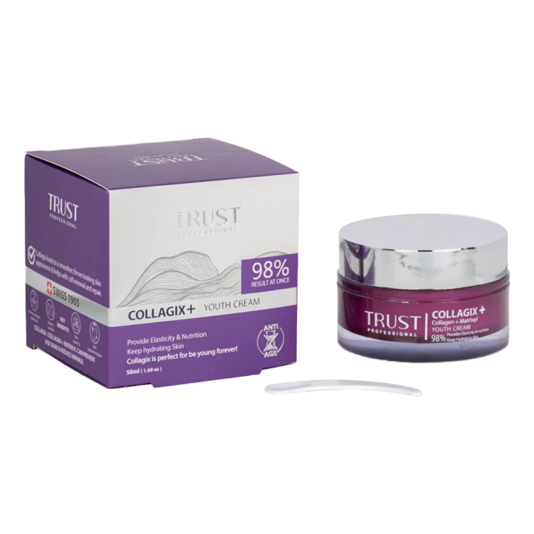 و در نهایت، پلی پپتاید آرژینین و لایزین موجود در کرم جوانساز کلاژن تراست، از ایجاد چینوچروک در پوست جلوگیری کرده و به حفظ شادابی و سلامت پوست کمک میکند. در کنار مواد مؤثره مطرحشده، این محصول تراست، با عصاره دانه لوپینوس آلبوس، به حفظ استحکام و افزایش خاصیت کشسانی پوست، با آسپارلین، به بهبود سوختوساز سلولهای پوستی و تکثیر آنها، با روغن آووکادو، به حفظ استحکام و پایداری پوست و با هلیانتوس آنوس سید اویل، به بهبود آبرسانی و جلوگیری از پیری پوست، کمک میکند.