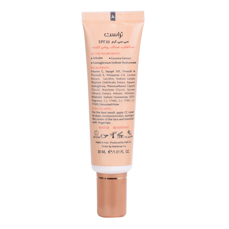 سی سی کرم پلاس تراست، به طور اختصاصی به روشن شدن پوست و برطرف کردن جای جوش و لکهای پوستی کمک میکند. این محصول بهطور همزمان با آبرسانی پوست، از ایجاد لکهای جدید در پوست جلوگیری مینماید. ترکیبات آربوتین، میتوکینیل، ویتامین سی، نیاسینامید و آزلوگلیسین به صورت همافزا، از تولید رنگدانههای ملانین جلوگیری کرده و به روشن شدن و رفع لکهای پوستی کمک میکنند. عصاره جلبک در این محصول باعث جلوگیری از ایجاد لکهای پوستی شده و همچنین وجود ترکیبات ضدالتهاب مثل عصاره گیاه اسپیرا اولماریا و بیزابولول در این محصول، التهابات ناشی از آکنه و سایر ضایعات پوستی را تسکین میدهد.