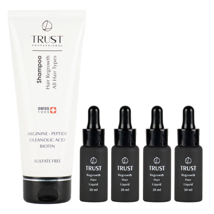 این کیت، مختص افرادیست که بارها از محصولات ضد ریزش موجود در بازار استفاده کردهاند اما نتیجه دلخواه خود را کسب نکردهاند! کیت تخصصی رویش مجدد تراست با استفاده از ترکیبات طبیعی، برای تاثیر گذاری بیشتر طراحی شده است و در مدت زمان 6 ماه، اثرات چشمگیری بر رشد مو خواهد داشت.