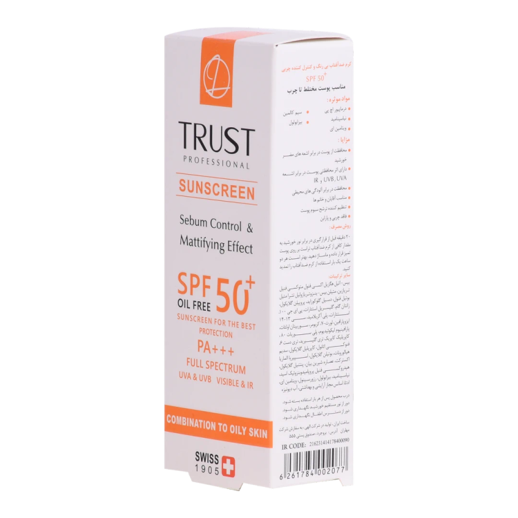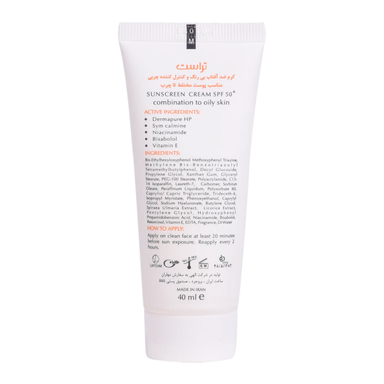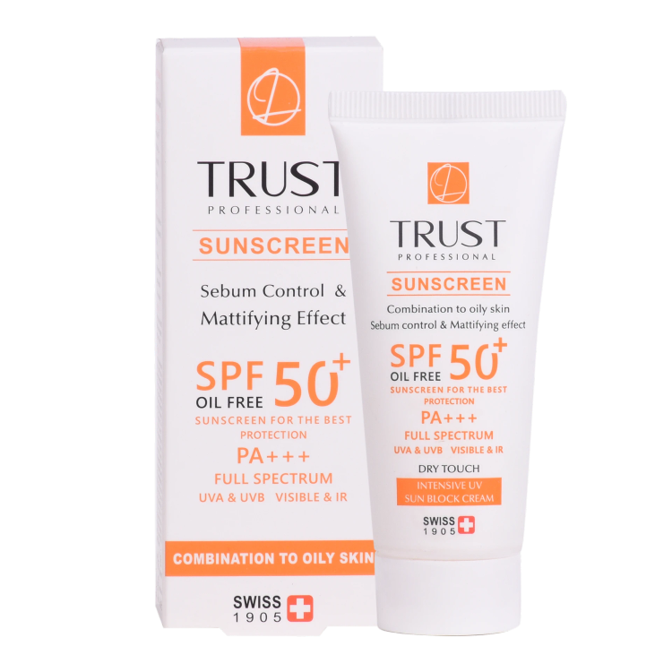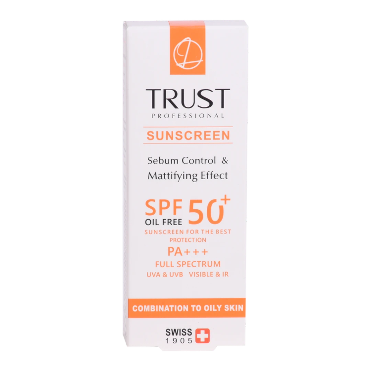 کرم ضدآفتاب و کنترل چربی SPF +50 تراست، با استفاده از مرغوبترین و جدیدترین مواد اولیه همچون درماپیور اچپی و سیم کالمین از پوست شما دربرابر پرتوهای مضر آفتاب به طور کامل محافظت میکند. این کرم علاوه بر مهار رادیکالهای آزاد و محافظت از پوست دربرابر آلودگیهای محیطی، از تخریب سلولهای پوستی، بروز چینوچروک، پیری زودس و لکهای ناشی از آفتاب نیز جلوگیری میکند. این کرم با تنظیم و کنترل ترشح غدد چربی و سبوم پوست، قطر منافذ چربی را کوچک کرده و آنها را مات میکند تا پوستی زیبا و جذاب داشته باشید. این محصول بافتی سبک داشته و با قابلیت جذب سریع، پس از مصرف منافذ پوستی را نبسته و هیچ خللی در روند تنفس سلولهای پوستی ایجاد نمیکند.