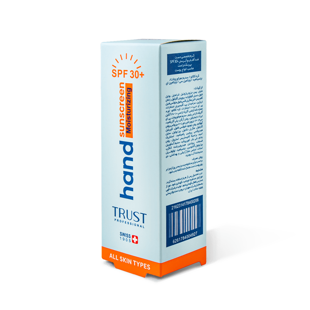 مجموعه ای از عوامل محیطی و درونی وجود دارند که با گذشت زمان منجر به خشکی، شل شدگی، چین و چروک های پوستی و ایجاد التهاب در پوست دست ها می شوند. دست ها روزانه در معرض مواد و اشیا خارجی مختلفی قرار دارند و بسیاری از اوقات افراد متوجه آسیب های محیطی وارد شده به پوست دست خود نمی شوند. برای مثال قرار داشتن در معرض مواد شیمیایی مضر و استفاده از شوینده ها و یا تاثیر پرتوهای مضر خورشید، پوست دچار تیرگی، خشکی، چین و چروک و التهاب می شود. پرتوهای UV یکی از دلایل اصلی خشکی، لک و ایجاد چین و چروک در پوست دست هستند که می بایست مهار شوند. بنابراین اگر به دنبال حفظ زیبایی و سلامتی و جوانی دست های خود هستید می بایست مراقبت های لازم را برای بهبود استحکام، نرمی و آبرسانی پوست خود انجام دهید و فرآیند پیری را در پوست خود به تاخیر بیندازید. کرم تخصصی دست ضد آفتاب و آبرسان تراست با داشتن فاکتور مراقبتی SPF 30+، رادیکال های آزاد ناشی از تماس با پرتوهای UV را مهار کرده و از پوست ما در برابر نور خورشید مراقبت می کند همچنین با دارا بودن ترکیبات کلاژن ساز، آبرسان، آنتی اکسیدان و نرم کننده به طور موثری پوست دست را آبرسانی کرده و ضمن تسکین التهاب پوست، ظاهری نرم و جوان به پوست دست می بخشد.