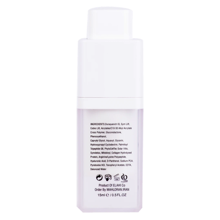 سرم سفتکننده حاوی ترکیب فعال اسمارت Duraquench IQ، که با عملکردی هوشمندانه لایه مراقبتی در سطح پوست تشکیل میدهد و از خروج رطوبت و خشکی و التهاب پوست جلوگیری میکند.
