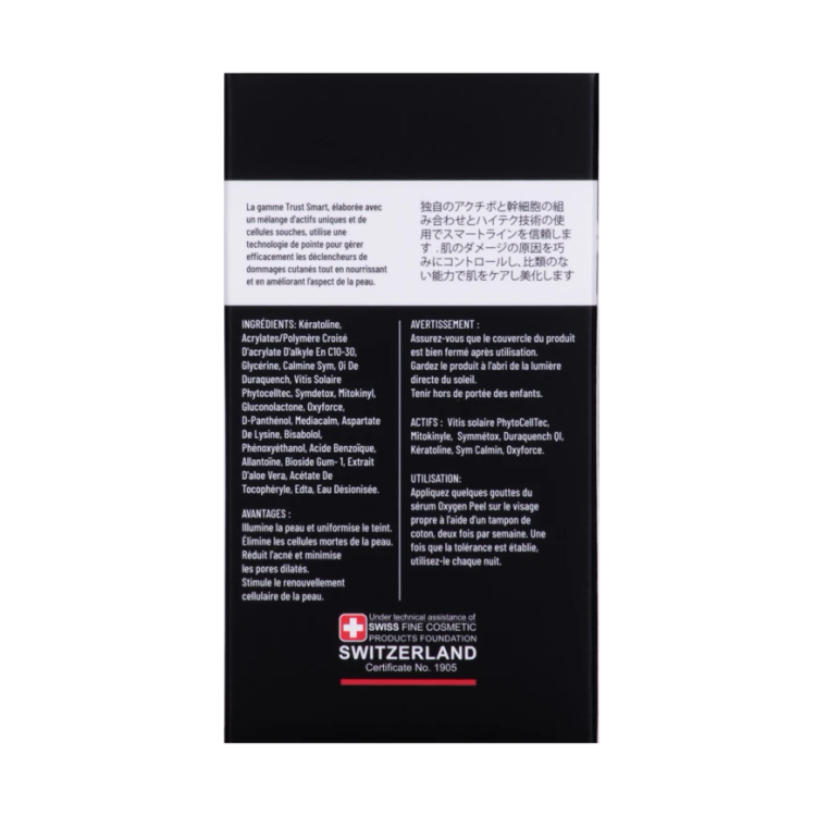 روش مصرف: در شروع مصرف ابتدا حداکثر دو بار در هفته (تا مرحله عادت و پذیرش محصول توسط پوست)، سپس از هفته دوم به بعد روزی یک بار (فقط شبها) از سرم لایه بردار تراست اسمارت به مقدار کافی بر روی پد یا پنبه قرار داده و بر روی پوست تمیز استفاده شود.